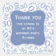 Pegatina Cuadrada Gracias: Patrón de números azul/blanco de 30 años