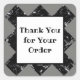 Este pegatina de agradecimiento presenta un sofisticado y profesional patrón de diamante con un gran cuadrado blanco en el centro para proporcionar el fondo para su texto. Los diamantes presentan un diseño blanco y negro con mármol en un fondo gris oscuro que se puede personalizar si se desea. Las palabras "gracias por tu pedido" aparecen en el centro y se pueden personalizar fácilmente. Diseño original - C. McGouldrick