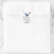 Pegatina divertido y moderno presenta personalizable "gracias por celebrarlo con nosotros" texto en un floreciente y elegante tipo de letra con ilustracion de color de cristal azul / martini.