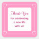 Pegatina Cuadrada Gracias por celebrar en Baby Shower un poco rosado