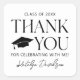 Elegante graduación cuadrada gracias pegatinas con moderno serif negro Gracias con acento de gorro de grado y elegante texto personalizado que puede ser totalmente personalizado con el nombre del graduado, año de clase y simple mensaje de agradecimiento.