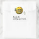 Pegatina para promocionar el lavado de manos. Con un lindo caracter sonriente diciendo "Gracias por lavarte las manos"
