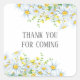 Pegatina Cuadrada Gracias por venir. Ducha de bebé de flores de Cham