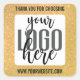 Pegatina Cuadrada Gracias, Purpurina amarillo brillante, logotipo co