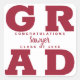 GRAD con letras rojas en negrita rellena las esquinas de estos pegatinas de sello para sobres cuadrado de grado. Felicitaciones por encima del nombre de su graduado y la Clase de abajo. VEA TODA LA COLECCIÓN de combinaciones de colores prehechas, invitaciones, placas de papel, servilletas, carteles y más en nuestra tienda.