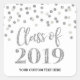 Clase de nombre personalizada de pegatinas de graduación de 2019 con efecto de impresión purpurina plateado patrón de confeti y texto de estilo con letras negro moderno.