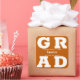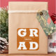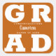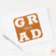 GRAD en letras blancas y negrita llena las esquinas de estos adhesivos cuadrados de graduación con fondo de naranja quemado. Felicitaciones encima del nombre de su graduado y la Clase de debajo. VEA TODA LA COLECCIÓN de combinaciones de colores pre-hechas, invitaciones, platos de papel, servilletas, letreros y más en nuestra tienda.