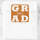 Pegatina Cuadrada Graduación Moderno Grad Blanco sobre Naranja Quema