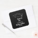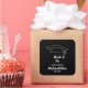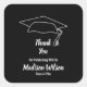 Este es un pegatina blanco y negro. Un gorro de graduación está por encima de las palabras 'gracias' en escritura blanca. Luego el pegatina dice 'por celebrar con nosotros'. Puedes personalizar al pegatina con el nombre del graduado y el año de graduación.