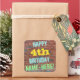 Este divertido diseño de pegatinas con temática de cumpleaños incluye un mensaje como "¡FELIZ CUMPLEAÑOS, NOMBRE AQUÍ!", donde el nombre puede ser personalizado. El fondo está representado por una pared de ladrillo de ladrillo marrón rojizo. El texto del mensaje de personalizable presenta colores como azul, amarillo y verde, y tiene un aspecto inspirado en el de los graffitis pintados. Pegatinas como estos podrían ser dados como regalo de cumpleaños, o quizás ser usados como decoraciones en una fiesta de cumpleaños para alguien que está celebrando su cuarto cumpleaños. [~Z0000273]