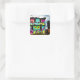 Pegatina Cuadrada Graffiti rosa y Verde azulado | Casa abandonada