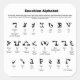 El alfabeto enochiano con formularios de letras, nombres de letras, equivalentes en inglés y pronunciación de los nombres de letras (pronunciación en comillas si es diferente al inglés). Las letras de Enochian en este gráfico se leen de derecha a izquierda, como se escribe en el diario de John Dee.