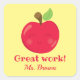 Muestra a tus estudiantes lo bien que han hecho. Mostrando una sonriente manzana roja con fondo amarillo, "¡Gran trabajo!" está escrito con una bonita fuente roja. Su nombre aparece debajo de la letra roja cursiva. Personaliza a tus pegatinas hoy mismo! gráficos de Prettygrafik Design (https://www.etsy.com/shop/Prettygrafikdesign)