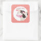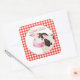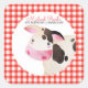 Pegatina Cuadrada Granja de vaca rosa Gingham Animal Birnyard
