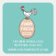 Ilustracion de una gallina sobre un huevo con texto personalizado.