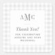 Pegatina Cuadrada Gray y blanco Gingham Monograma Gracias