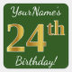 Pegatina Cuadrada Green, Faux Gold 24th Birthday + Custom Name