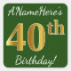 Pegatina Cuadrada Green, Faux Gold 40th Birthday + Custom Name