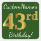 Pegatina Cuadrada Green, Faux Gold 43rd Birthday + Custom Name