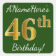 Pegatina Cuadrada Green, Faux Gold 46th Birthday + Custom Name