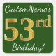 Pegatina Cuadrada Green, Faux Gold 53rd Birthday + Custom Name