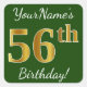 Pegatina Cuadrada Green, Faux Gold 56th Birthday + Custom Name