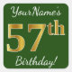 Pegatina Cuadrada Green, Faux Gold 57th Birthday + Custom Name