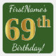 Pegatina Cuadrada Green, Faux Gold 69th Birthday + Custom Name