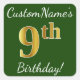 Pegatina Cuadrada Green, Faux Gold 9Cumpleaños + Custom Name
