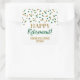 Pegatina de etiquetas de favores jubilatorios con patrón de confetti verde y oro.