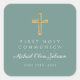 Green Religious Cross Boy First Communion Square Sticker.