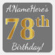 Pegatina Cuadrada Gris, Faux Gold 78th Birthday + Nombre personaliza