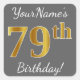 Pegatina Cuadrada Gris, Faux Gold 79th Birthday + Nombre personaliza