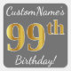 Pegatina Cuadrada Gris, Faux Gold 99th Birthday + Nombre personaliza