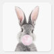 Pegatina Cuadrada Gris rabbit soplando chicle rosado