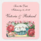 Pegatina Cuadrada Guardar la fecha Cisnes y Rosas Personalizados Peg