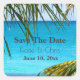 Pegatina Cuadrada Guardar la fecha Tropical Azure Beach y Palm Frond