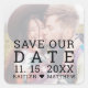 Este boda de fotos personalizado salva a nuestros pegatinas de citas es el complemento perfecto para guardar los envíos de anuncios de fechas. Esta plantilla moderna de diseño muestra su foto descolorida con una tipografía simple en negro que dice "Guardar nuestra fecha" y sus nombres y fecha a continuación para personalizar. Diseñado por la artista ©Susan Coffey.