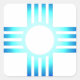 Un símbolo básico del Nuevo México Zia en azul oscuro que se desvanece del centro hasta llegar a un azul turquesa brillante.