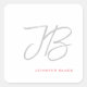 Pegatina Cuadrada Guión de caligrafía en blanco grisáceo monográfico