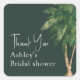 Etiqueta de agradecimiento de ducha de boda de árbol de palma con ilustración de árbol de palma exótico acuarela y tipografía de fuente de pincel elegante. Perfecto para la fiesta de ducha de boda de primavera verano.