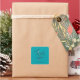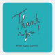 Moderno pegatina de Gracias con un guión escrito a mano sobre un brillante fondo turquesa, personalizado con su marca, nombre personal o comercial.