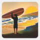 Pegatina Cuadrada Guy on Beach con Surf Board en Sunset