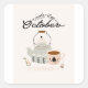Una tetera y una taza con las palabras hacen que sea octubre para recordar. Este diseño parece realmente efectivo para estos Pegatinas