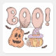 ¡Boo! El diseño de Halloween Boo es perfecto para cualquiera que celebre la temporada de Halloween. Incluye texto rosa que lee BOO y tiene calabaza, gorra de brujas, jack o linterna, telaraña y murciélagos.