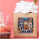 Pegatina Cuadrada Halloween de trucos o tratamientos para esquimales