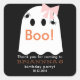 Pegatina Cuadrada Halloween Fantasma Chica Cumpleaños Gracias Negro