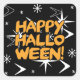 Un espeluznante patrón moderno de Halloween de mediados del siglo XX con boomerangs y starburst sputnik, en naranja y negro.