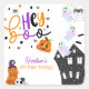 Fiesta de Halloween púrpura, negra y Naranja Hey Boo con Fantasma y un Pegatina de Favor del Cumpleaños de la Casa
