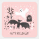 Pegatina Cuadrada Halloween lindo fantasma con Ilustracion rosa negr